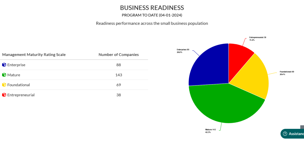 The Business Readiness section provides affiliates with insights into the levels of readiness exhibited by companies in their program, measured against a maturity scale. This feature assists affiliates in assessing the preparedness and maturity levels of the companies they work with.