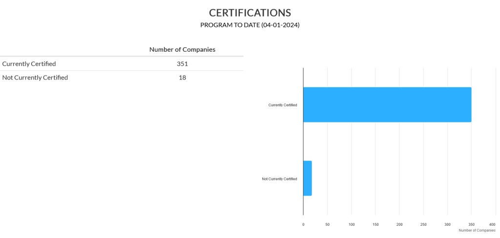 The Certifications section provides an overview of companies that are certified, as well as those that are not certified.