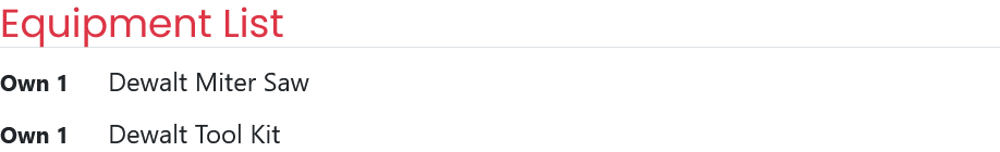 Equipment List Section