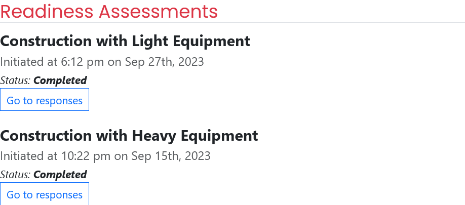 Readiness Assessments Section