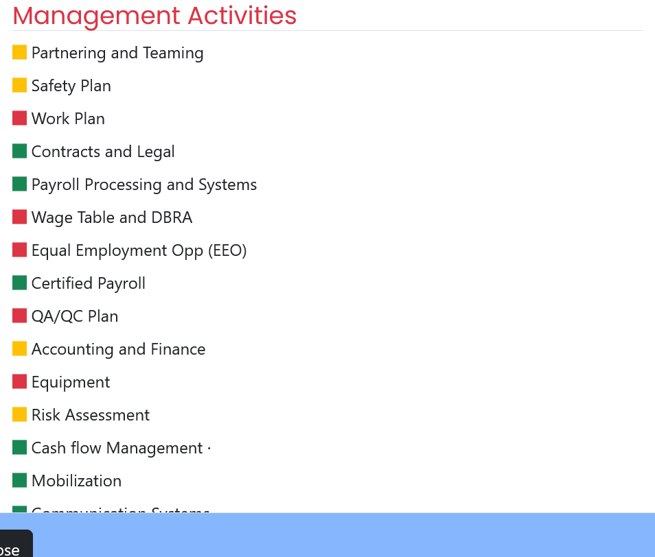 Management Activities Section