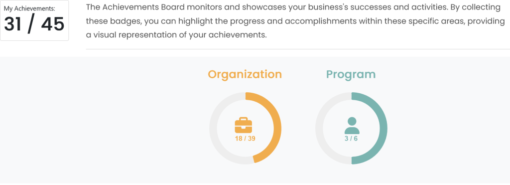 The Achievements Overview provides business owners with a summary of the achievements they’ve accomplished within their organization and program.